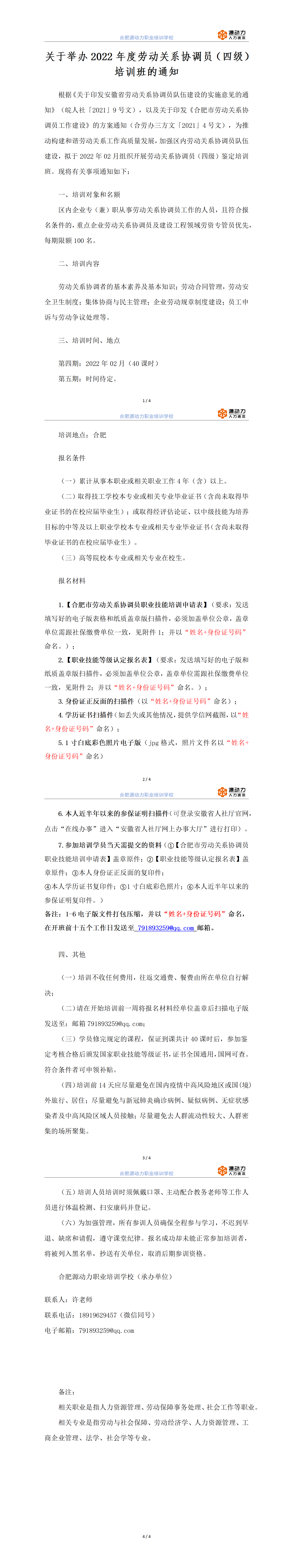 關(guān)于舉辦 2022年度勞動關(guān)系協(xié)調(diào)員(四級) 培訓班的通知